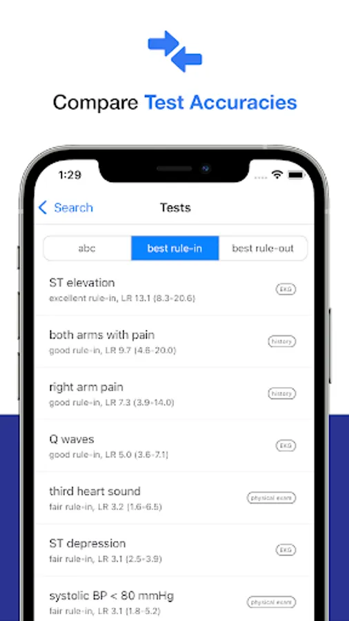 - Over 1200 diagnostic test accuracies, so you never order a useless test again