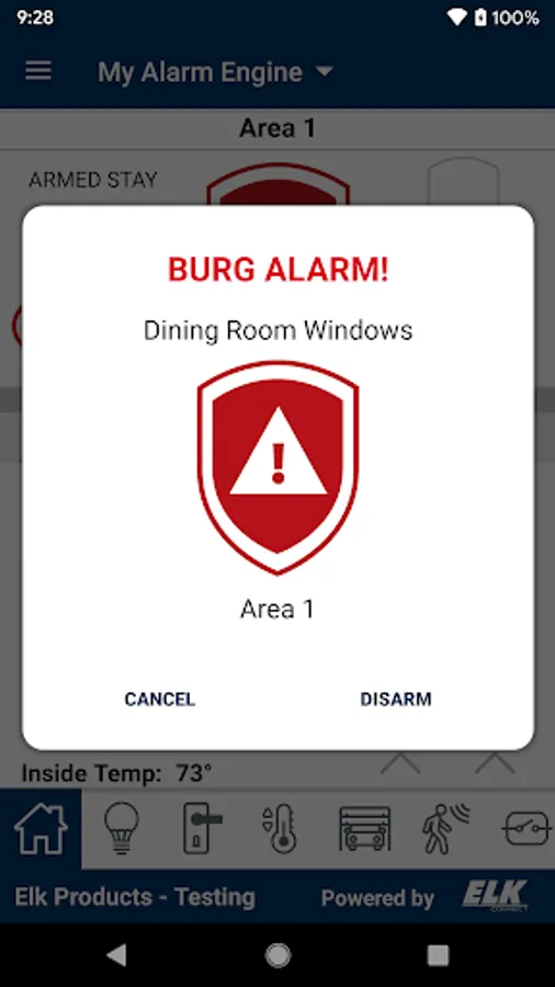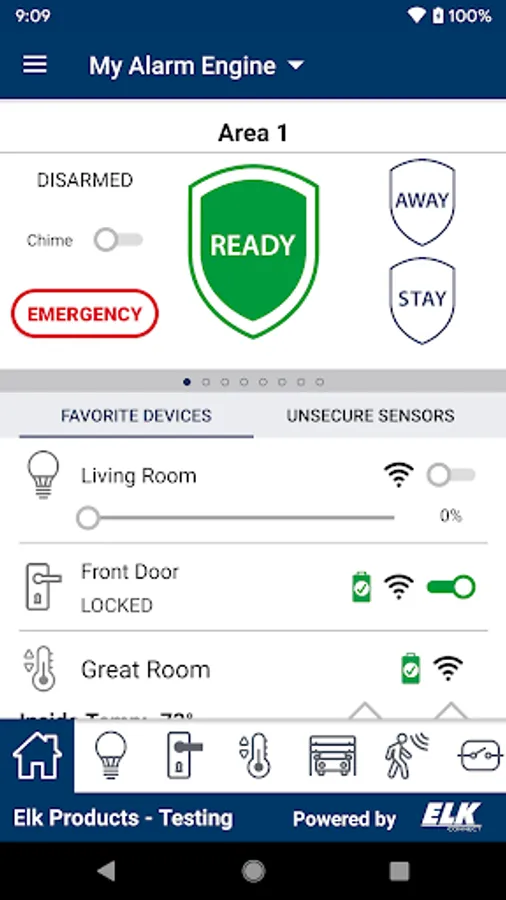 Note: This app requires a compatible ELK E27 Alarm Engine with an ElkConnect Interactive subscription plan. Available features may vary based on system equipment and configuration. For more information, contact your ELK certified installer or visit www.elkproducts.com.