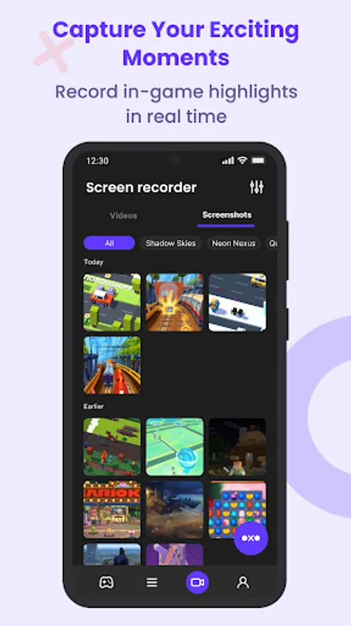 Screen recording, screenshots - capture every moment of your gaming, from draws, strategy guides, to epic replays. Watch, share, and organize your clips and screenshots with OXO's unique tagging feature. Plus, OXO supports multiple customizable settings for quality and resolution. (Android 10 and above support in-game audio recording)