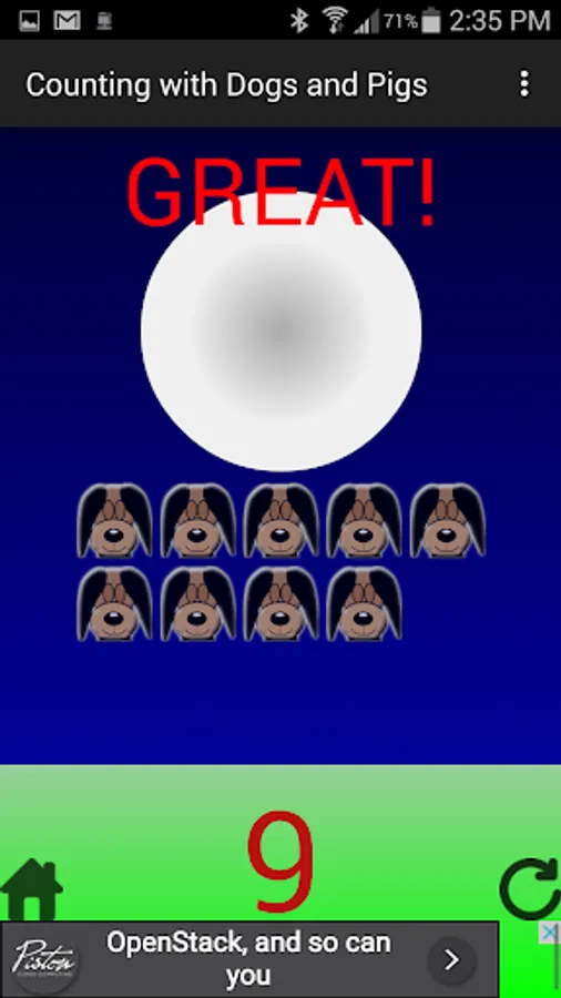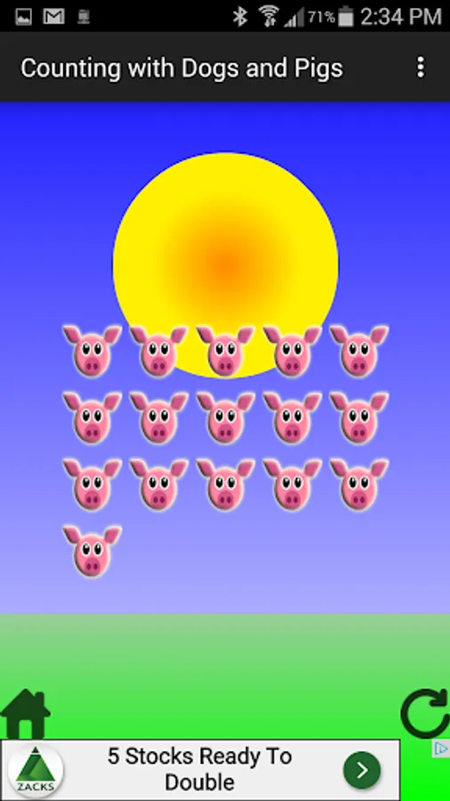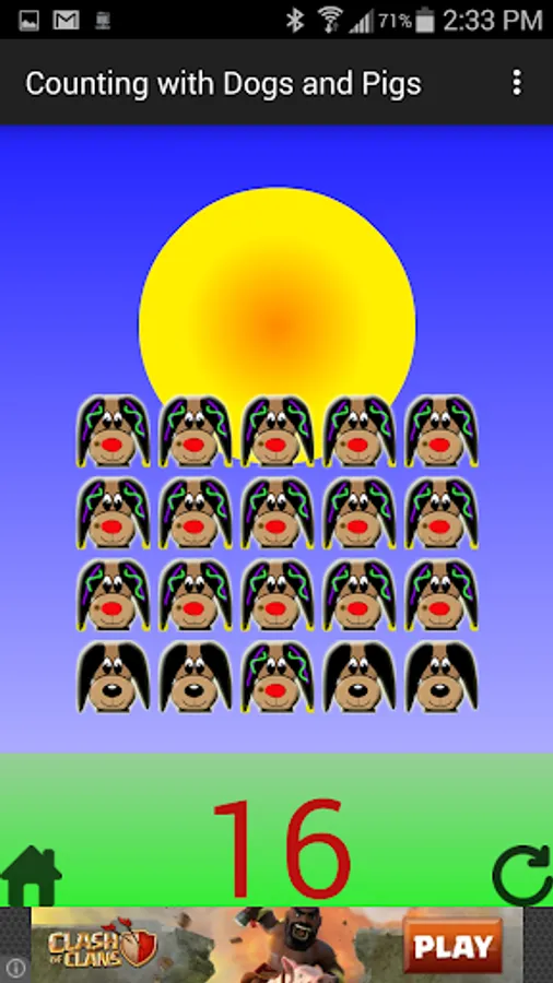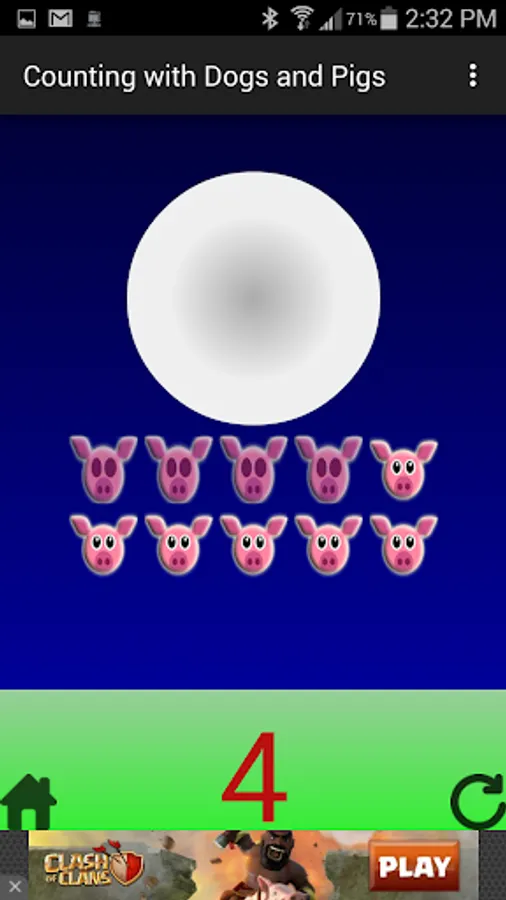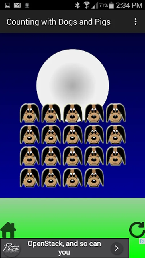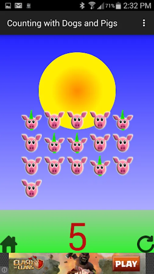 - The number of pigs and dogs in each screen is randomly generated between 5 and 20, so it is different each time.