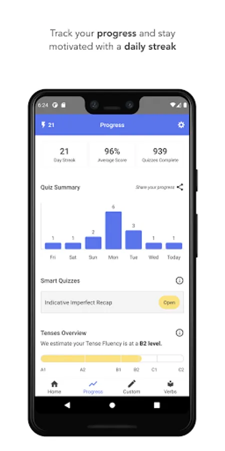 * Track your progress across multiple devices and stay motivated with a daily streak.