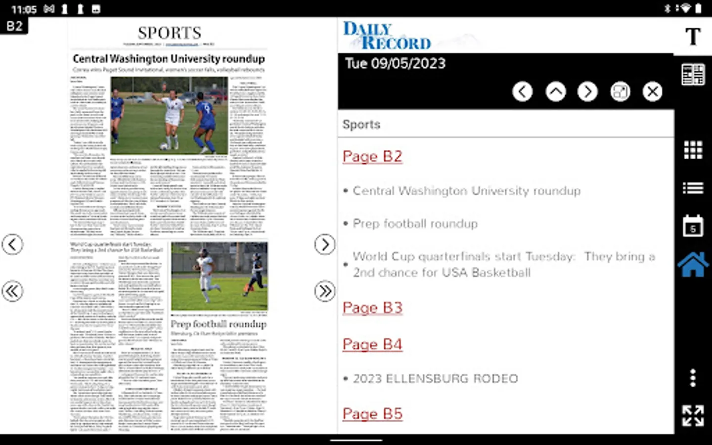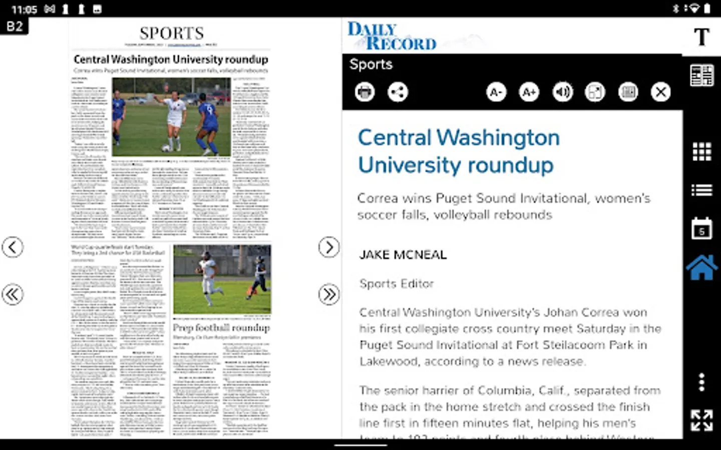 This app allows you to read everything as it was printed, or click anywhere on the story to read in a text view mode, browse archives and email or share stories to social media sites.