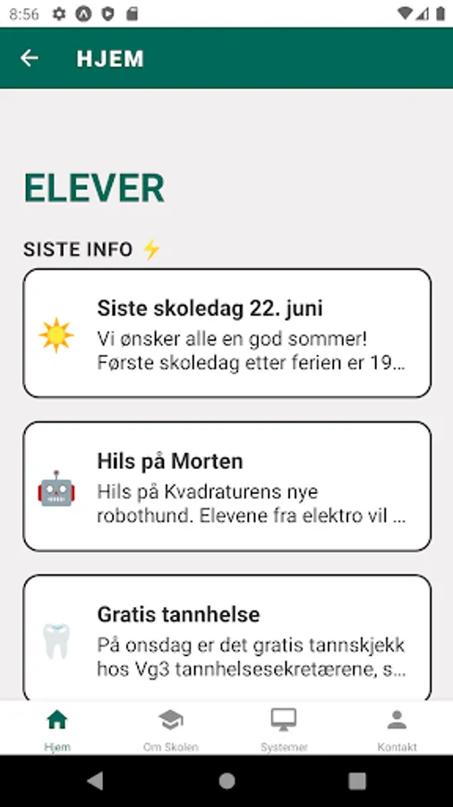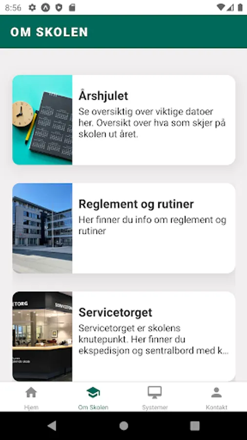 This app helps you to be informed and updated through the start of the new school year, and in everyday school life. Here you will find what you need to know about the school.