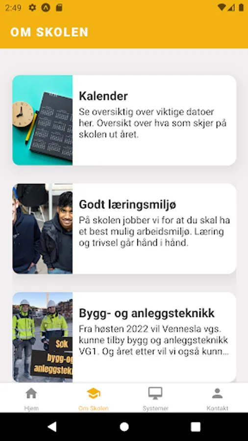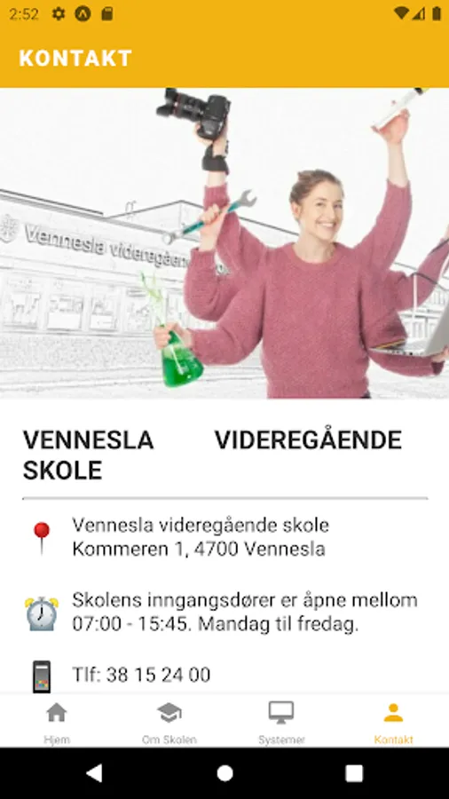 This app helps you stay informed and up-to-date through the start of the new school year, and throughout the school year. Here you will find what you need to know about the school. Everything you wonder about Vennesla vgs will be answered with a few taps!