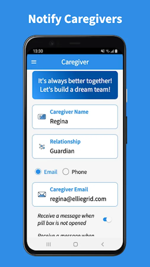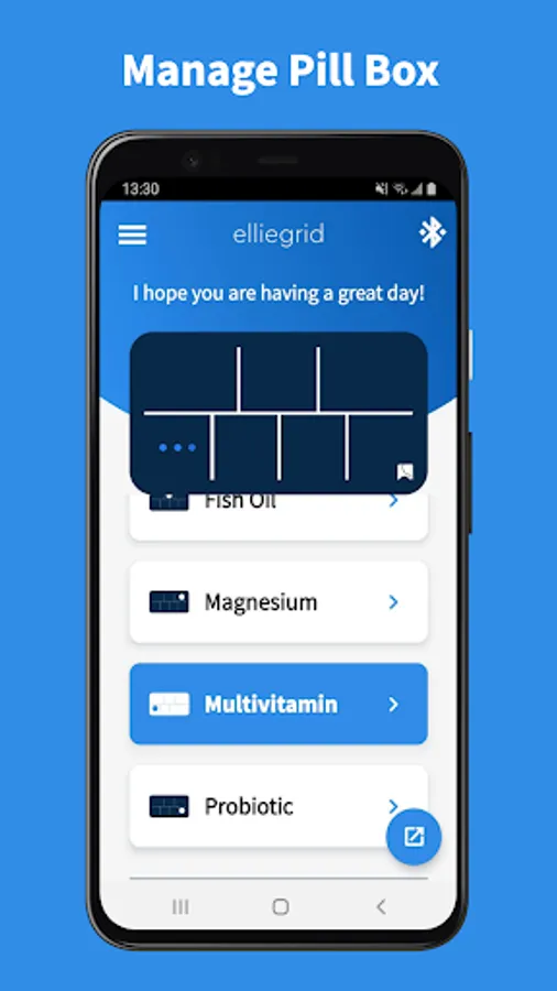 EllieGrid's app and smart pill box allows users to: