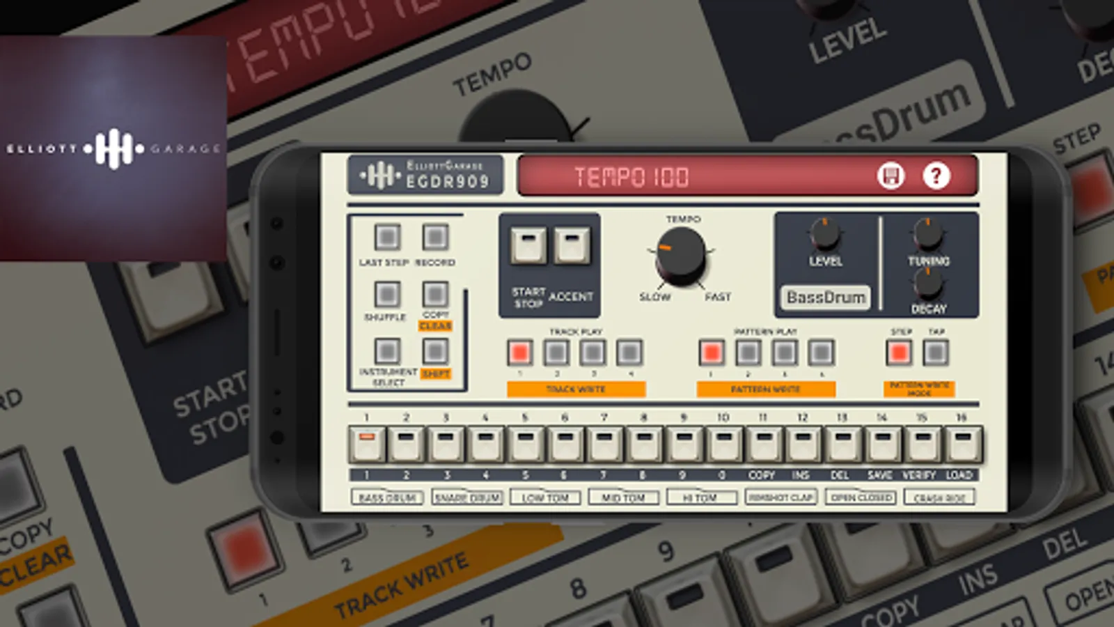 ElliottGarage presents EGDR 909 for Android, a drum machine that emulates the vintage hardware from the 80's.