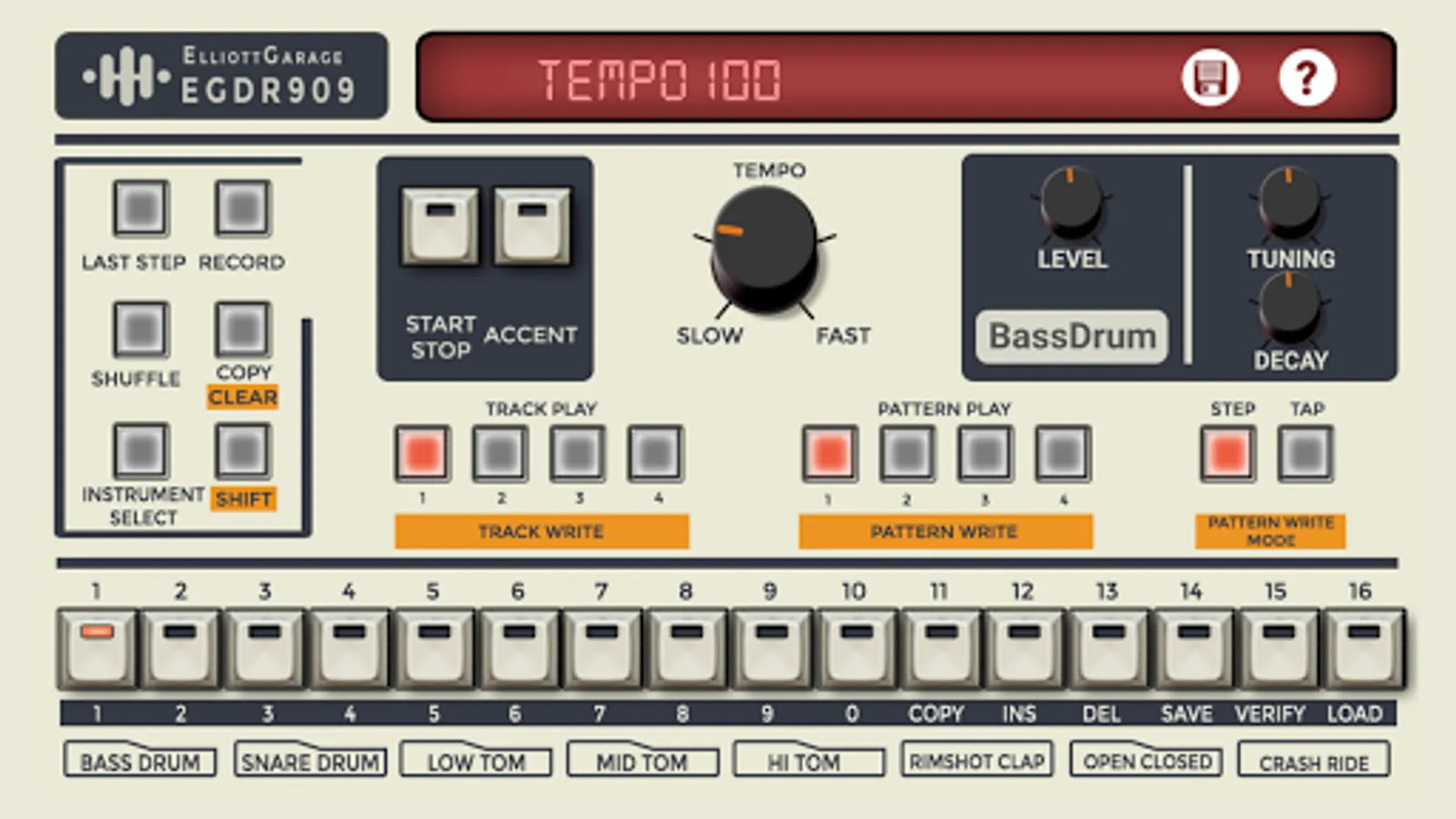 ElliottGarage presents EGDR 909 for Android, a drum machine that emulates the vintage hardware from the 80's.