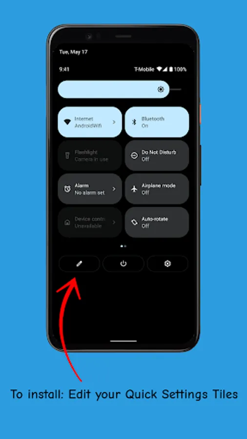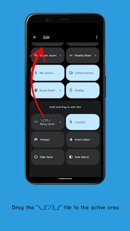Please note: This is a quick setting tile only. It will not show up as an app in your app launcher. To install, you will need to edit your Quick Settings Tiles and drag the ¯_(ツ)_/¯ tile to the active area.