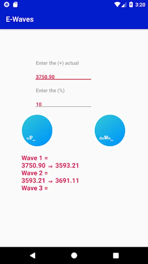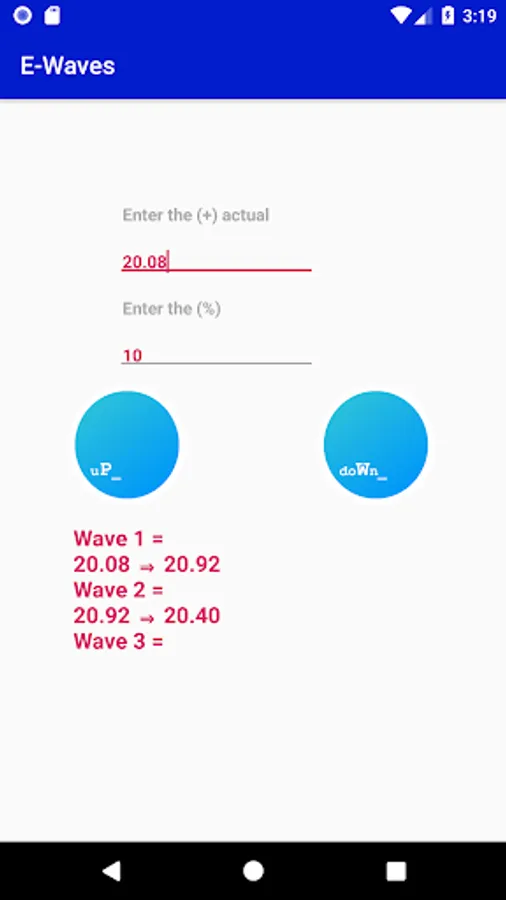 Set your actual value and the percentage of variation (UP/DOWN) you wish to see the Elliott Wave projections. That's it!!! Scroll the results and/or click once on them to get the charts. By this version, only two-decimal-place numbers can be charted. E-Waves intends to be a new way to approach ML and AI tasks.