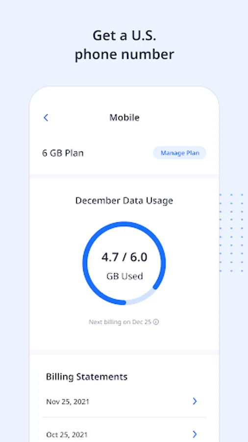 Get a U.S. phone number in under 5 minutes. Find the perfect phone plan for your data needs. All plans include unlimited talk and text with super fast 5G or 4G LTE coverage. Pause anytime you want. Only pay for data you use.