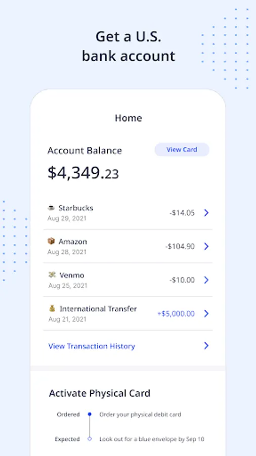 Get a debit card powered by Visa. Easily spend money from your bank account from 140+ countries. Integrate with ApplePay, GooglePay, and Venmo. Start spending instantly with a virtual debit card that you can use with Apple Pay or Google Pay.