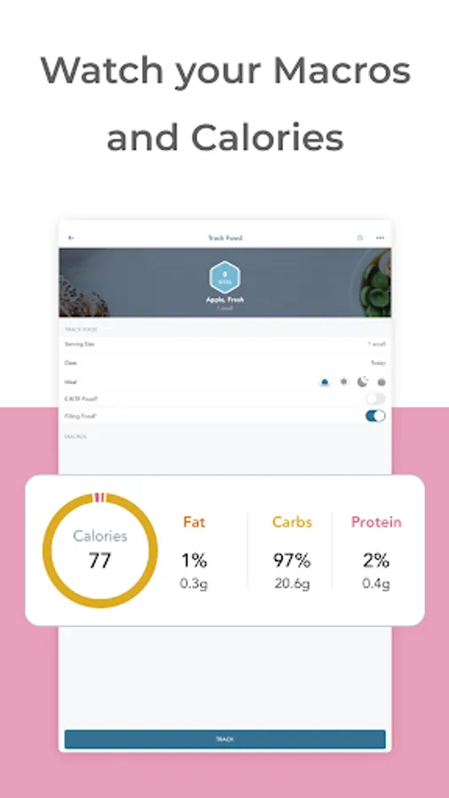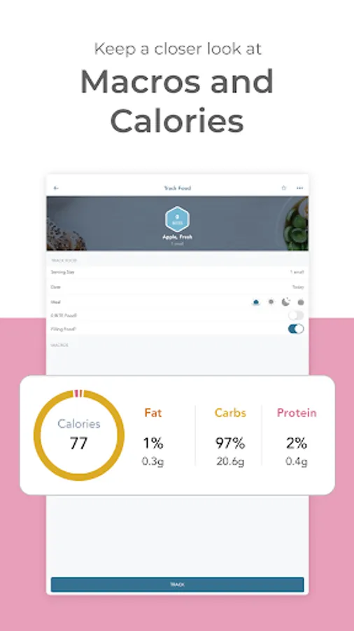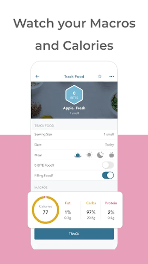 - Track BITES, calories, and macros at the same time on one simple dashboard