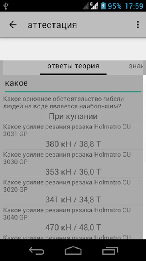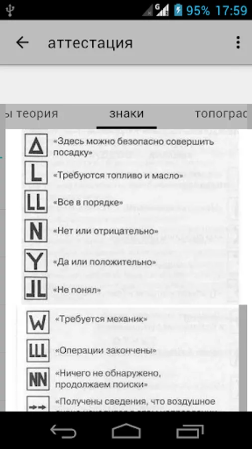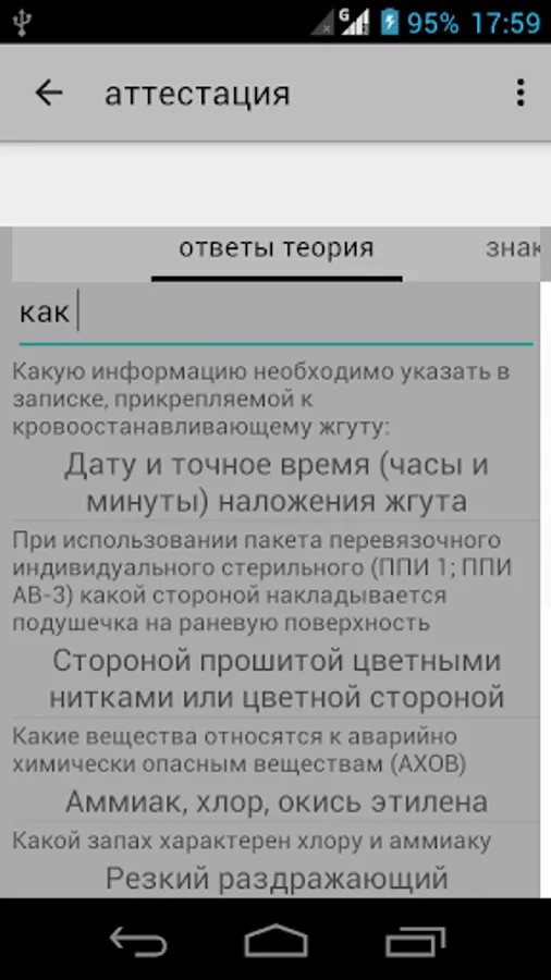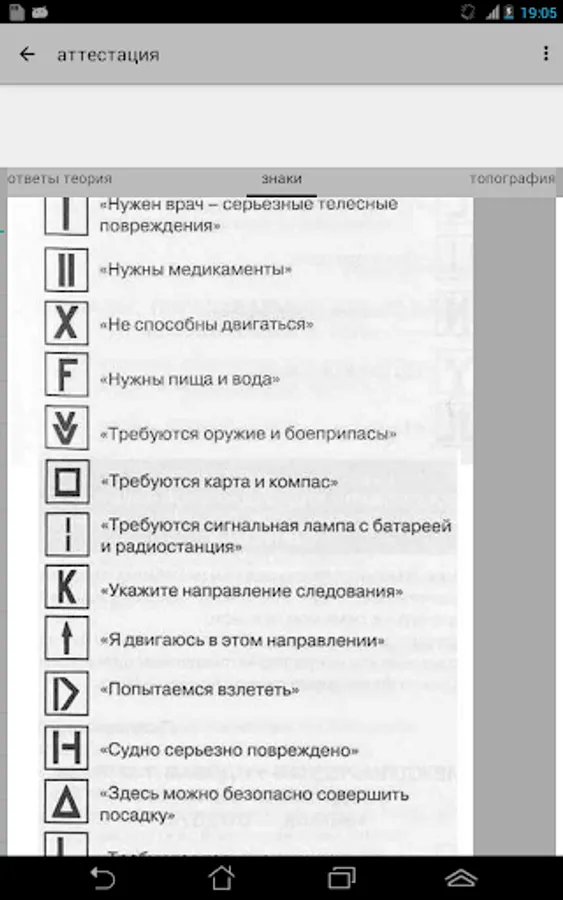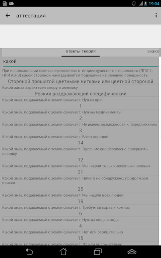 The application also contains answers to some questions in the theory for the certification of rescuers (computer base test data), traffic signs, the answers on the topography, NBC and fire training. And sentry duty at the security post.