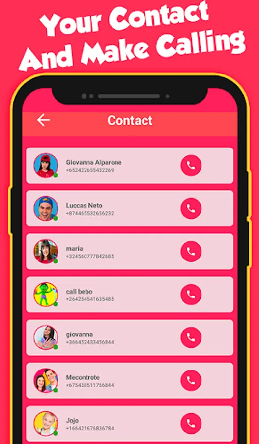 The famous actress Giovanna Alparone and jojo are calling you: Fake call and video call application to accompany your days in your free time when you feel lonely and bored then entertain yourself with fake calls from your idol Giovanna Alparone. this application to simulation a fake chat messenger with a fake call and video call, we add an option to start a live chat with your duo Giovanna Alparone and Luccas Neto, to look a real chat messenger live. all this just to prank your friends or your family to make a fake chat with the famous Giovanna Alparone.