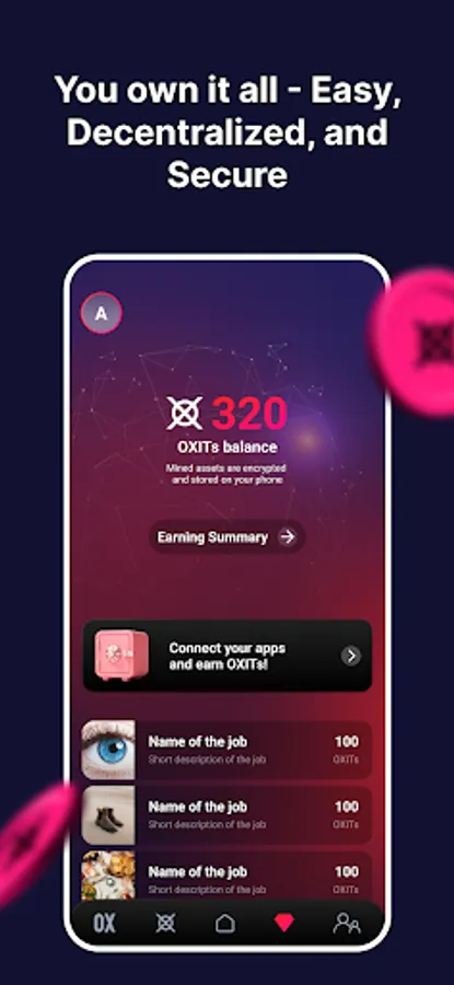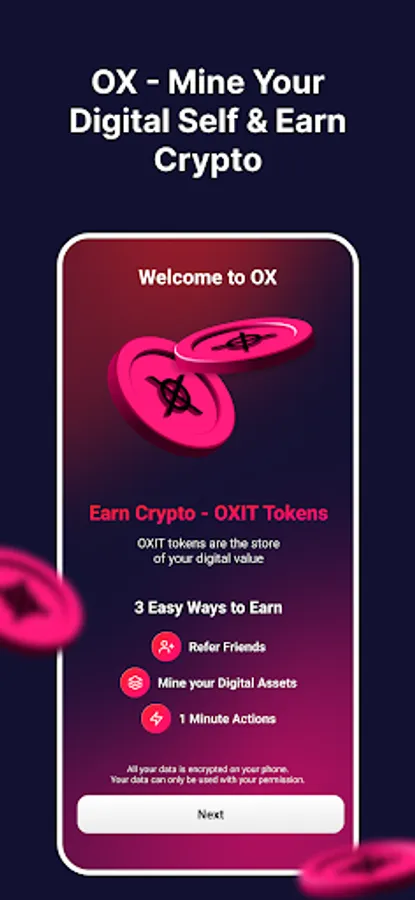 The OX app is decentralized, giving you total control of your data privacy and ownership. All mined assets are securely stored and encrypted only on your phone, only you have access to it.