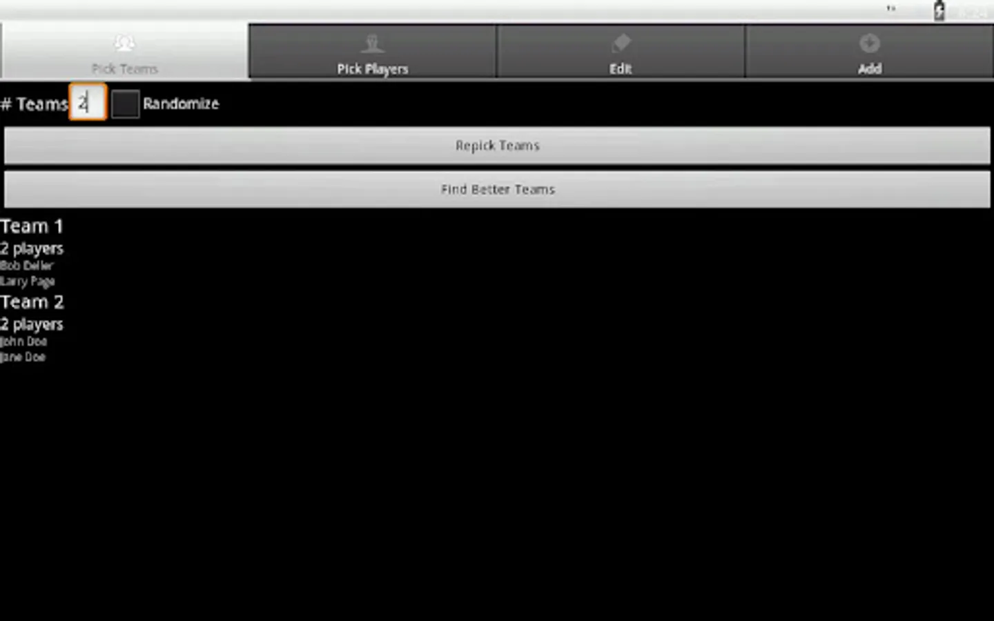 If you're tired of having to do "team captains" every time you want to change up teams, but don't want entirely random teams either, give this app a try.