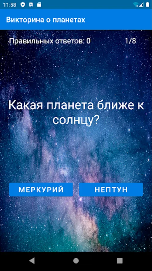 Космическая викторина на знание планет. Пройди простую викторину и проверь свои знания на расположение планет в нашей системе.