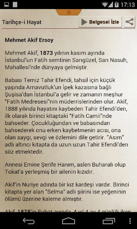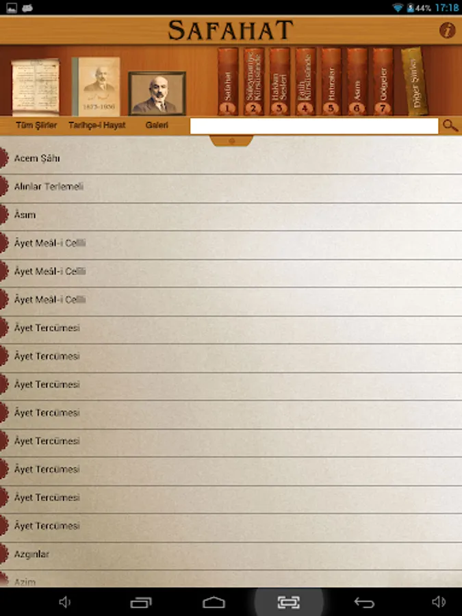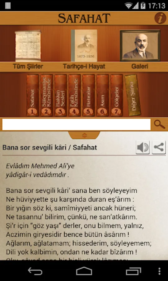 National and spiritual poet Mehmet Akif Ersoy with the collection of his poetry and actually won new features in the mobile environment consisting of seven books Safahat case.