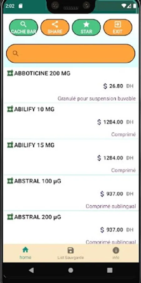 This app contains lots of info on medications in Morocco knowing their type originator or generic, their public prices selling their family, membership and many more.