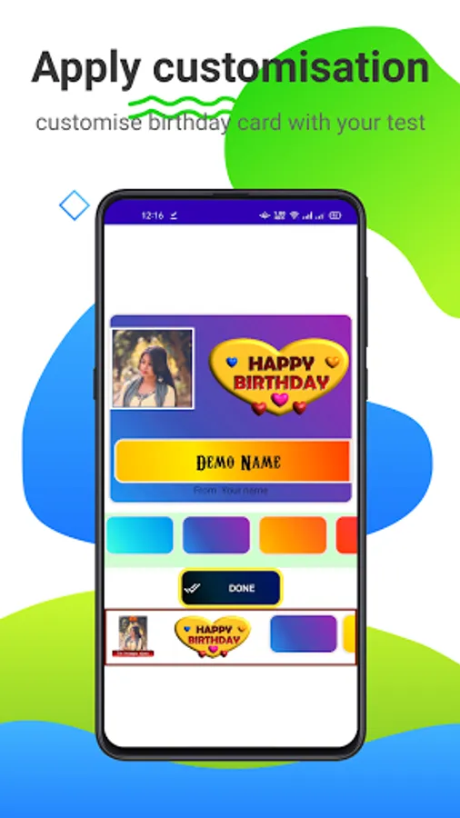 - To create a birthday card, first take a picture from the gallery and then enter the name of the person whose birthday it is and the card will be created.