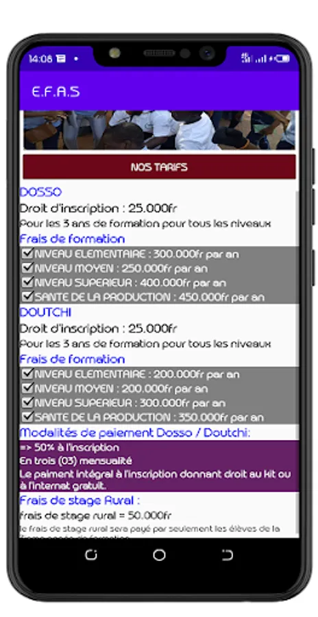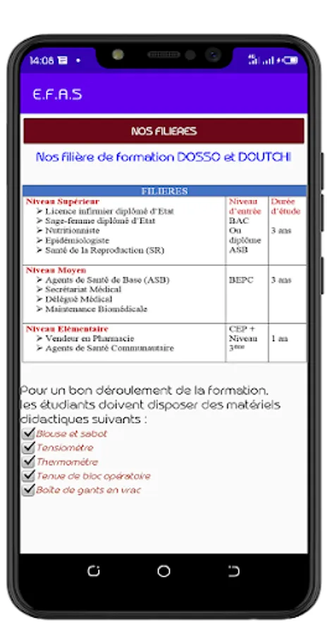 Download our EFAS mobile application for information on our health training school in Dosso and Doutchi