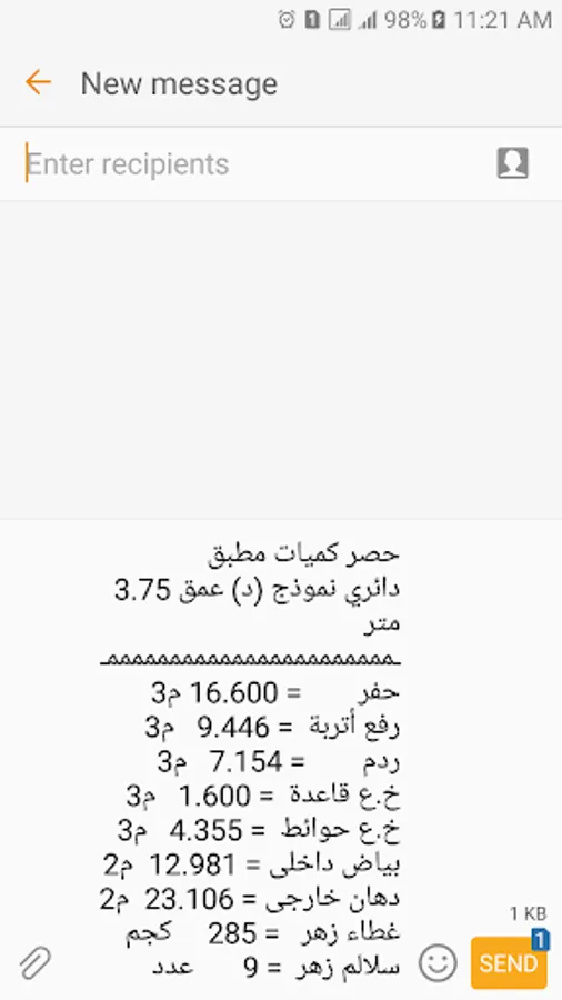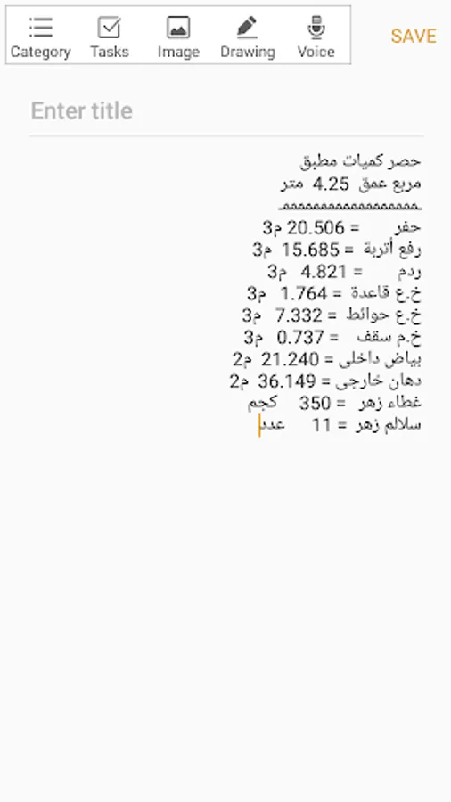 حصر كميات البنود التالية