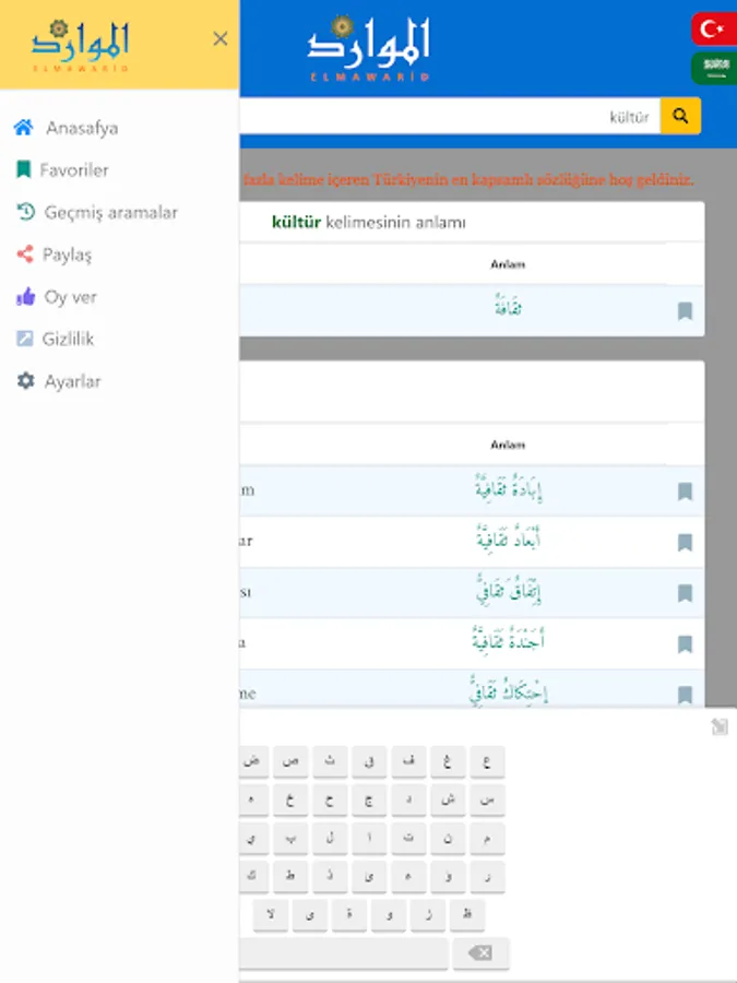 The most practical dictionary and translation program with you. Thanks to the integrated Arabic keyboard, you can search in Turkish or Arabic quickly and easily.