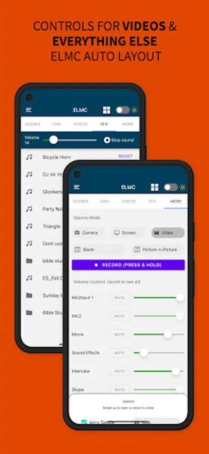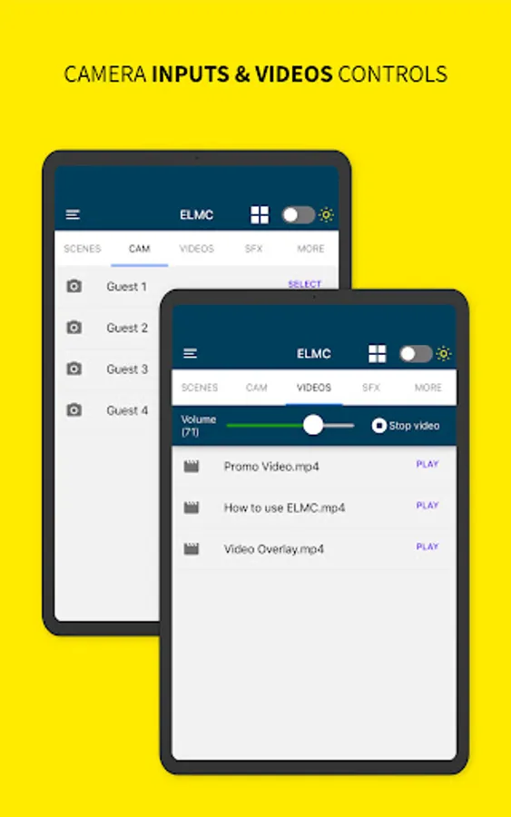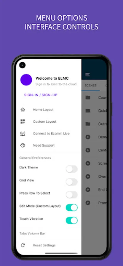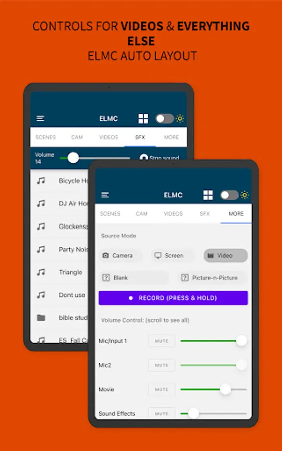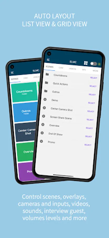 Control Ecamm Live using any iOS mobile device. With ELMC you will be able to control all aspects of Ecamm Live: Select between different scenes, trigger overlays by turning them on or off, select inputs (cameras, interview guest, NDI sources, etc), play and stop videos and sounds. You can control all volume levels independently. With this app you will be able to switch between different source modes such as camera mode, screen share mode, video mode, and blank source mode. The app gives your controls to toggle on or off the picture-in-picture feature. You can start or stop your recordings or live stream. ELMC provides over 29 actions to control Ecamm live. The ELMC app now supports two layout formats: Auto Layout & Custom Layouts Visit https://elmc.app/elmc-mobile-app for a complete list of actions.