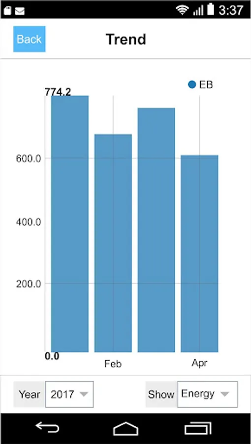 User can view monthly energy consumption trend in graphical representation with data for both Grid and DG as well water, gas consumption.