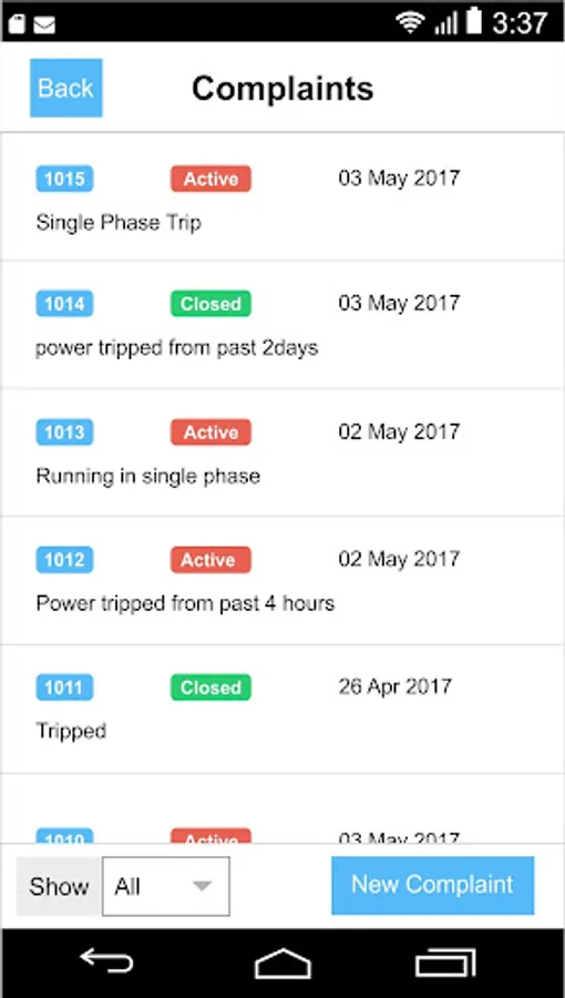 Complaints can be raised to service provider in case of any interruption of electricity supply or maintenance required and tracked until its closed.