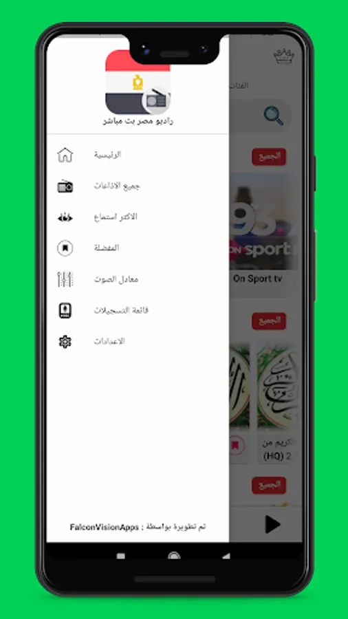 Radio Egypt is an application for playing internet radio stations. Radio Egypt allows you to listen to a wide variety of music, songs, social programmes, news, comedy, entertainment and other variety of programs provided by various internet radio stations.