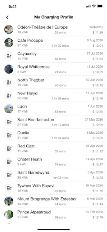 Detailed invoice about your charging history is saved for you to view at any time you wish. You can see details such as location, date, charging time, cost, energy consumed, etc.