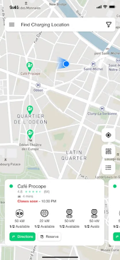 This app helps EV drivers to find out nearby charging stations, navigate, make reservations and initiate charging by scanning QR code. Also, the app shows charging history and reservation history.