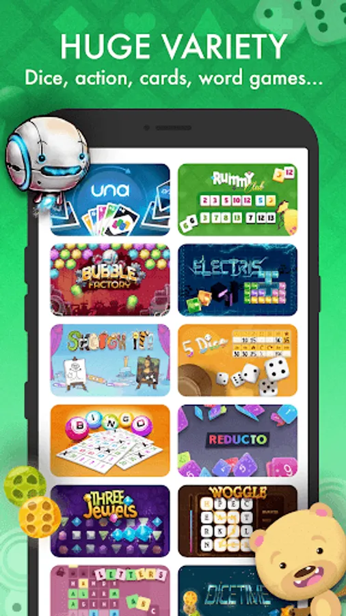 elo not only has selected beautiful games - all designed with attention to detail and optimized for your mobile gaming experience - but also a large selection. In addition to the over 60 games, one is added every month. Our most popular games are Rummy, Una and Reducto. Our classics are Nine Men’s Morris, Checkers, Chess and Go. At elo there are dice games like TwentyOne or Qwixx, action games like Ubongo or Double, word games and more than just one Trivia Quiz.