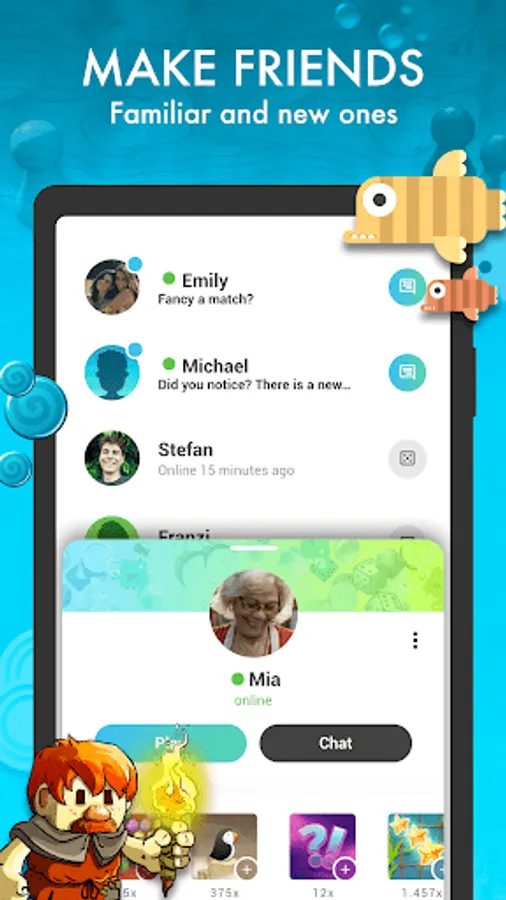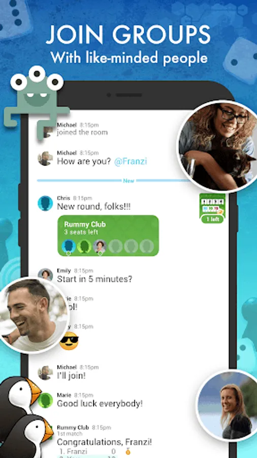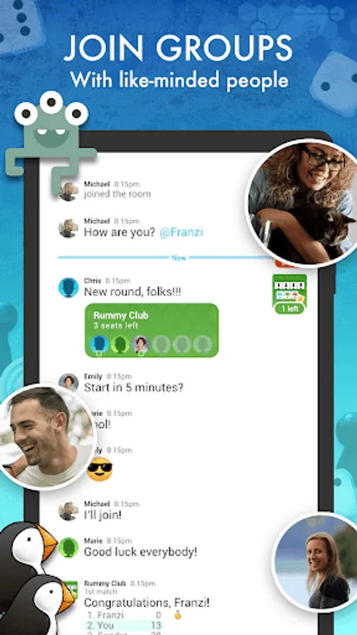 On elo you can take part in tournaments, play at two or more, as a whole family, as a group, on the go or at a party. Open a room on elo, chat, propose games, play series or start the voice chat, and the fun can begin.