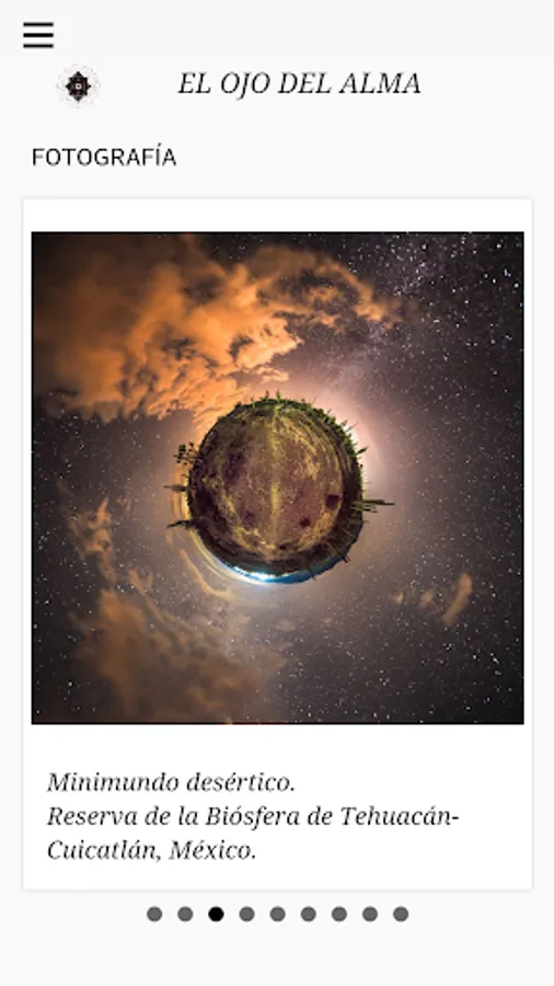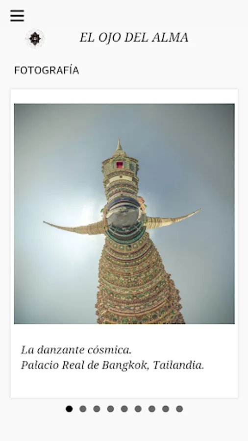 The eye of the soul a photography book that portrays a unique way of observing, looking the essence of the world beyond their appearance, a form of meditation is converted into photographic art. Explore with this application the impressive work of Carlos Adampol Galindo