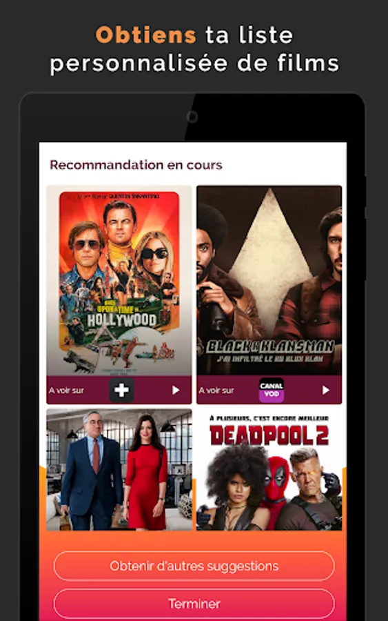 To personalize the list of films, Pearlrider obviously takes into account your profile but also your favorite VOD platforms and your current state of mind.