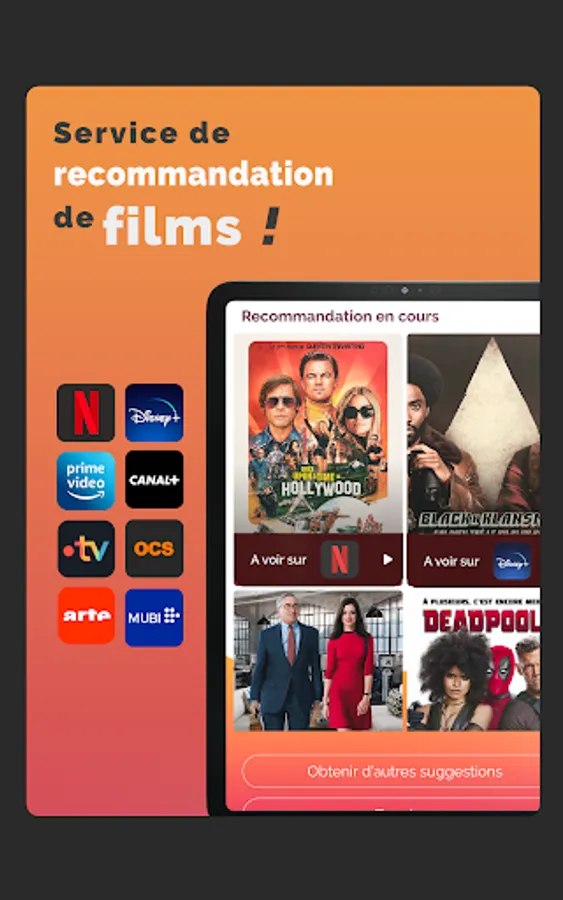 Compatible with the main VOD streaming platforms: Netflix, Disney+, OCS, Prime Video, Canal+, AppleTV, Arte…