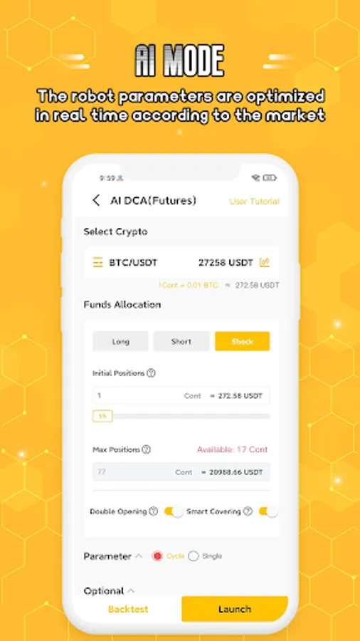 uTrading, trading for you, complex transactions will become simple. Start your trading robot in 2 minutes, make money before learning. The robot offers manual and AI modes. In AI mode, the strategy parameters are optimized in real time according to the market.