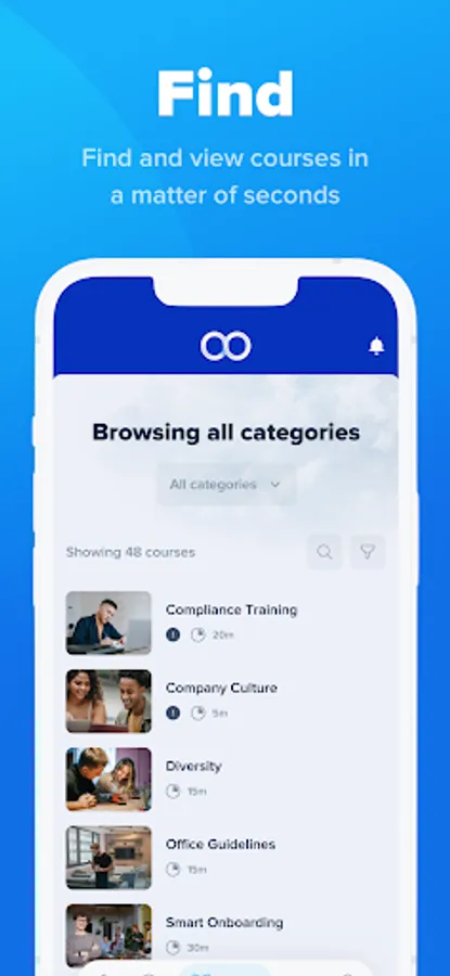 Note: The app focuses on learners first, ensuring their training is delivered, easy to access, and engaging. If you want to create your training paths, visit http://eloomi.com/infinite and start for free.