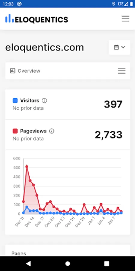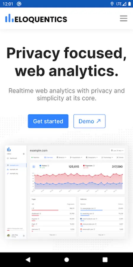 Eloquentics is a privacy focused, web analytics software solution. It provides detailed web traffic reports, such as Realtime, Overview, Acquisitions, Behavior, Geographic, Technology, Events, and more.