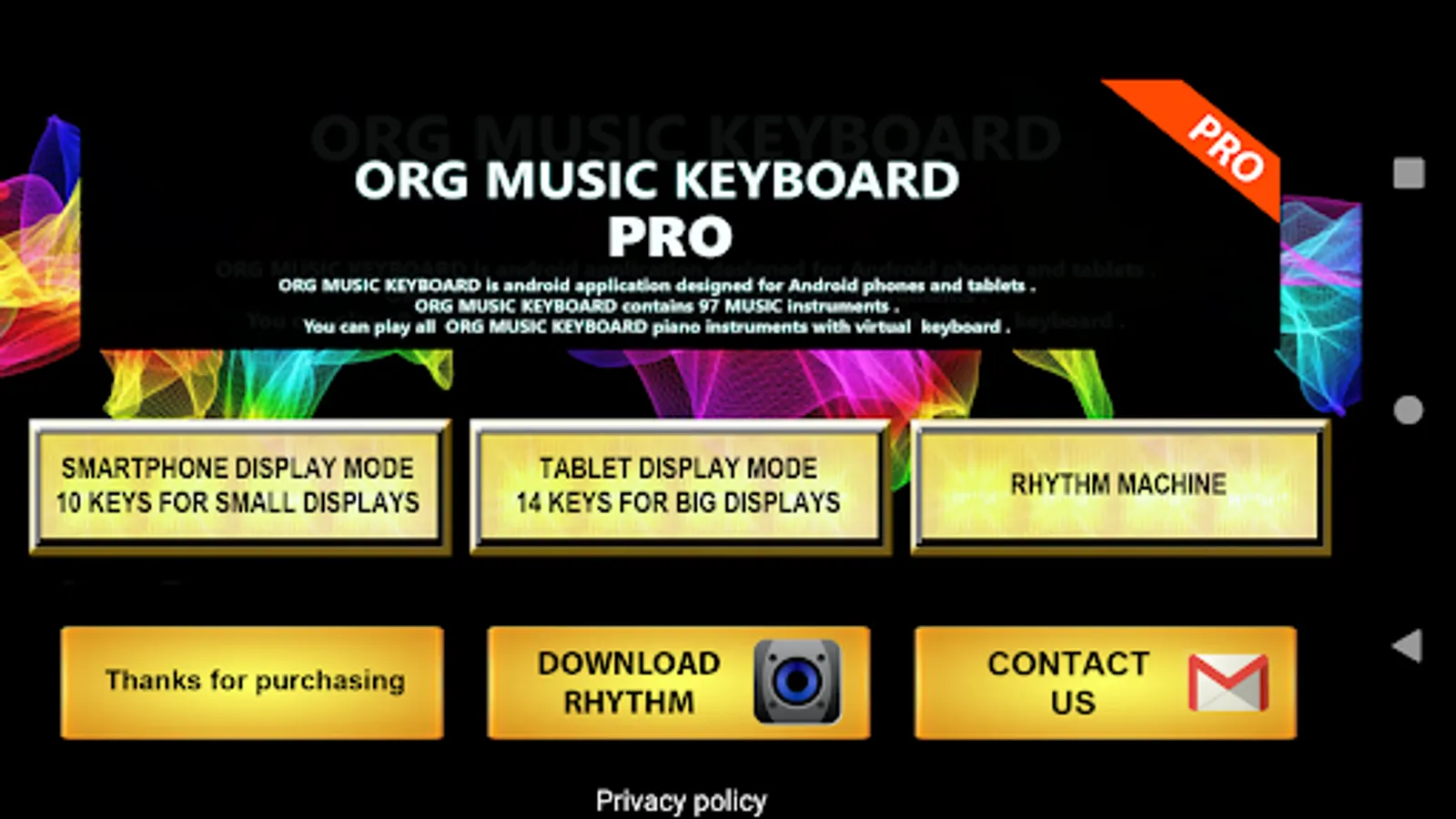 ORG MUSIC KEYBOARD PRO is android application designed for Android phones and tablets . ORG MUSIC KEYBOARD PRO contains 97 MUSIC instruments . You can play all ORG MUSIC KEYBOARD PRO piano instruments with virtual keyboard .