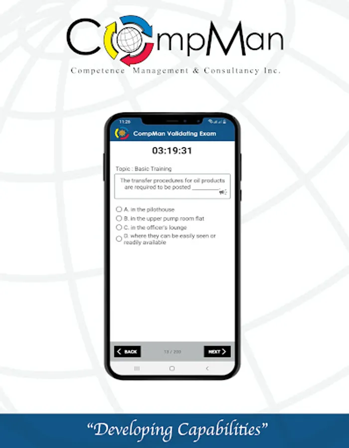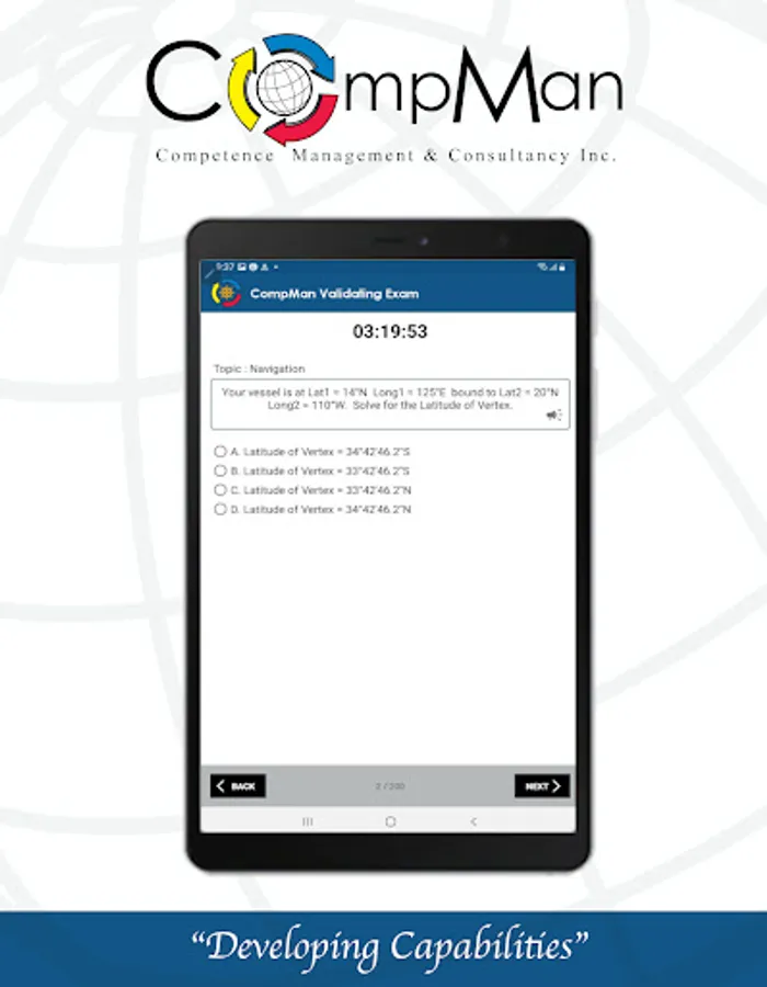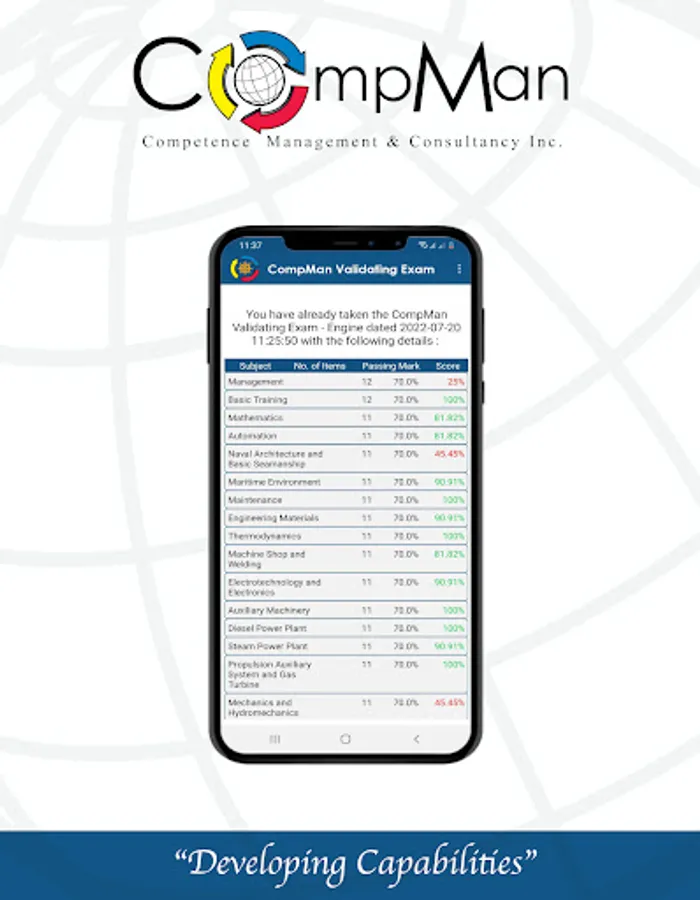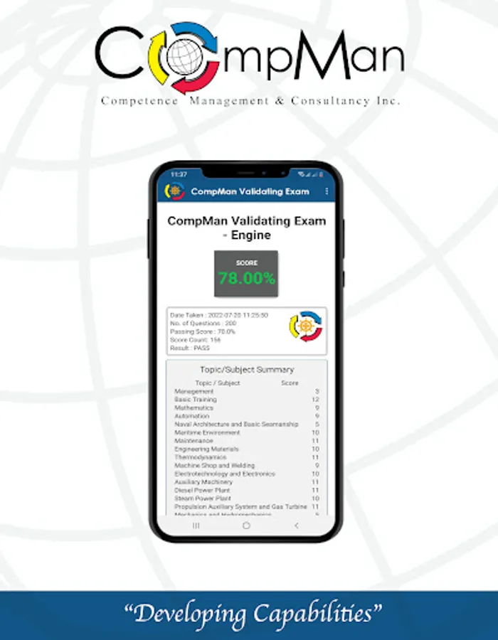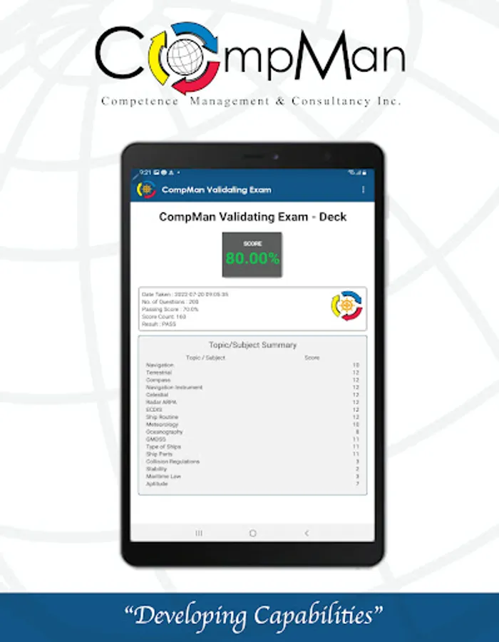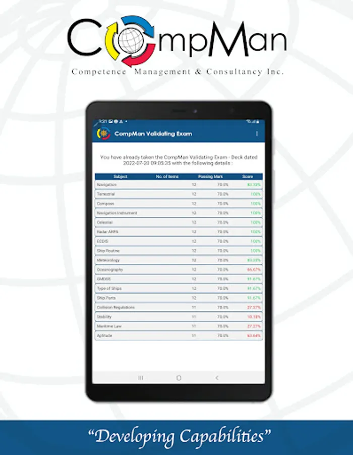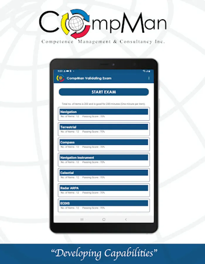 CompMan Validating Exam app is designed as a maritime assessment tool both for students and school admins to monitor the students gained knowledge throughout their school years.