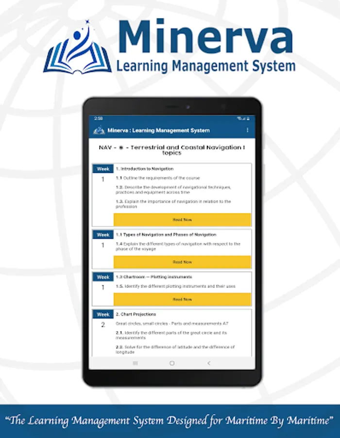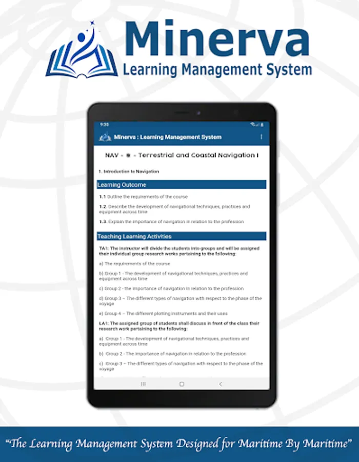 MINERVA facilitates outcomes-based education by providing course setup that identifies each topic with STCW specification. All contents are centralized, ensuring standardization across the entire program and consistency of delivery of each course.