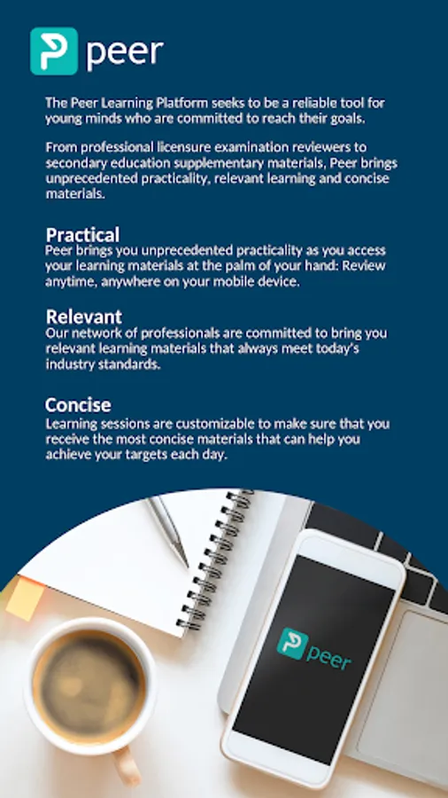 Peer brings you unprecedented practicality as you access your learning materials at the palm of your hand: Review anytime, anywhere on your mobile device.