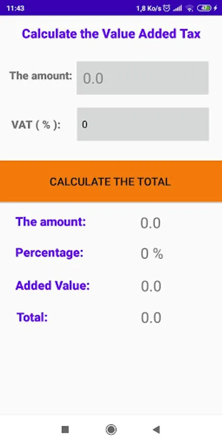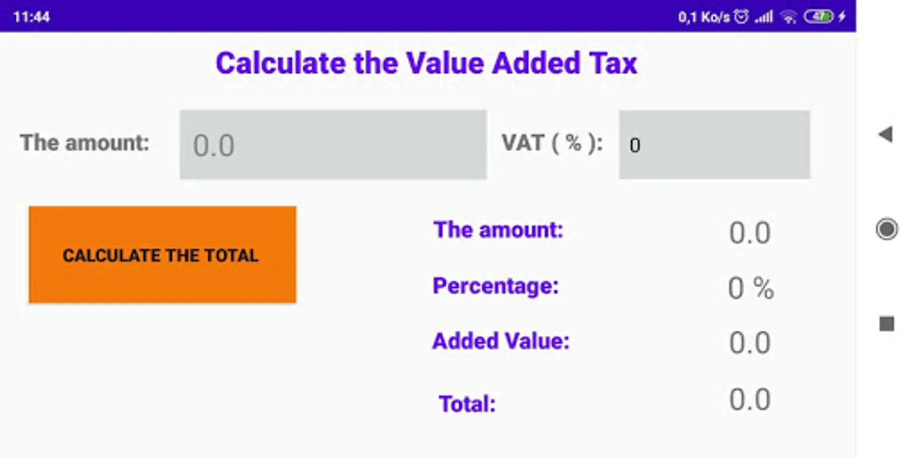 An application that helps you calculate the added value in a very easy and smooth way. By entering the amount and the percentage of added value.