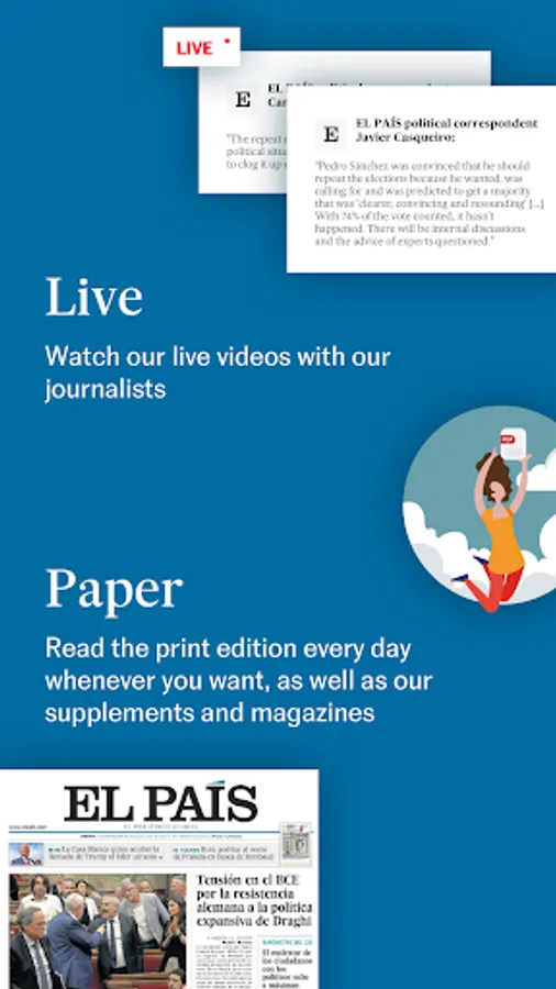· Enjoy all sections of EL PAÍS and all supplements: El País Semanal, El Viajero, ICON, Babelia, Cinco Días, Retina, El Comidista ...