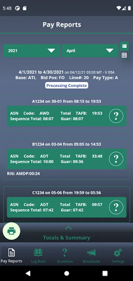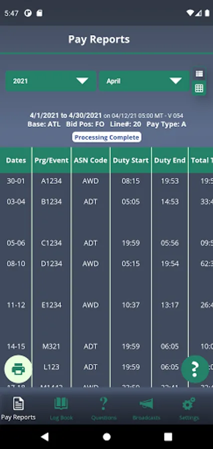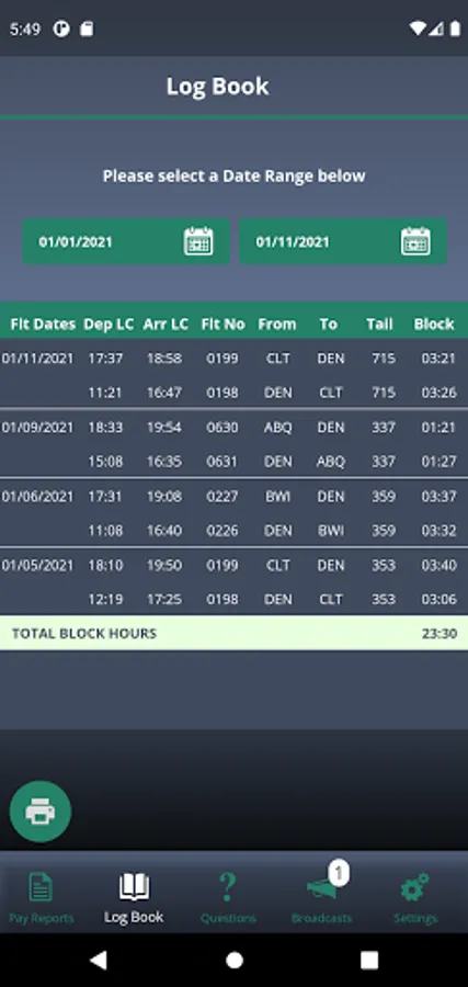 An app used by crew members to view pay reports, receive messages and view log book data.