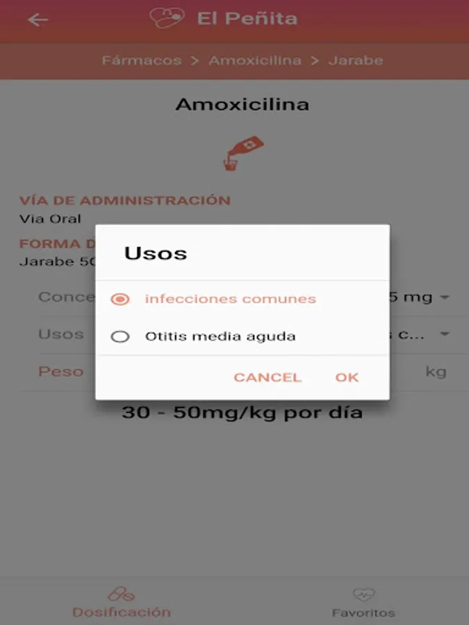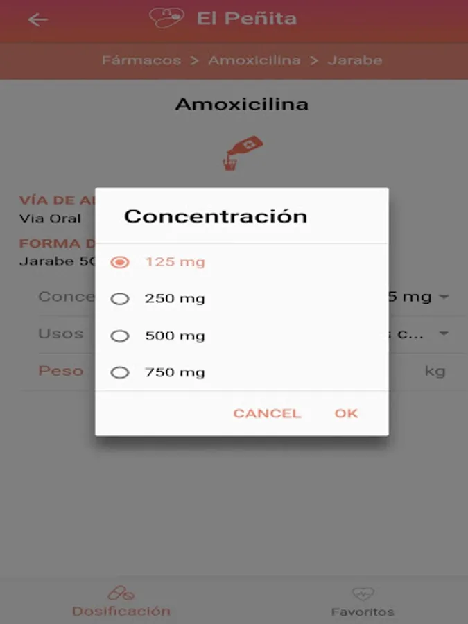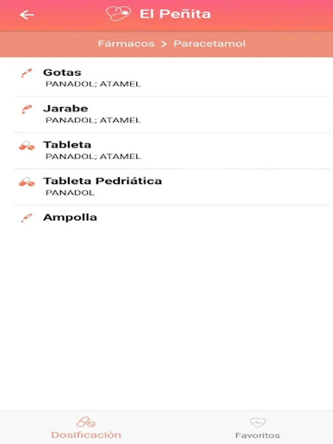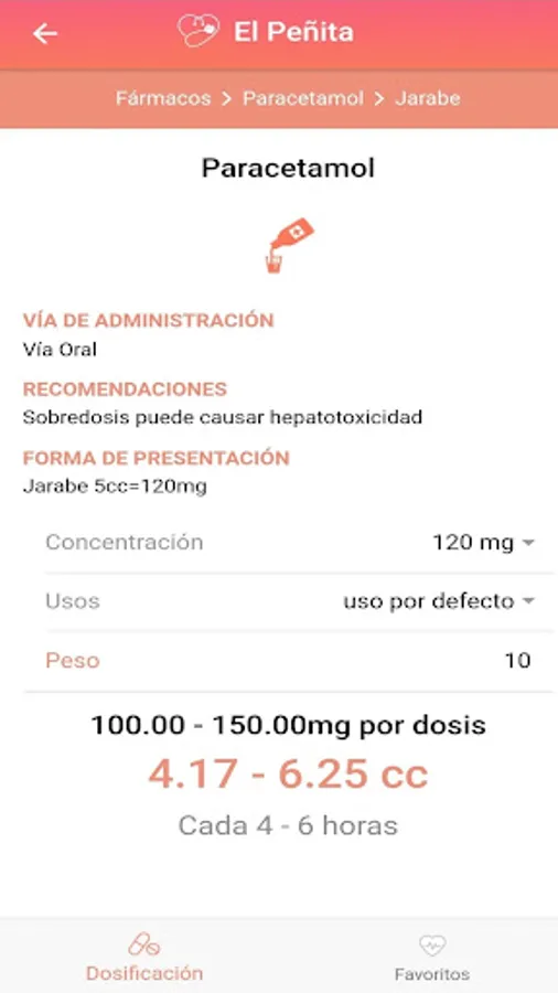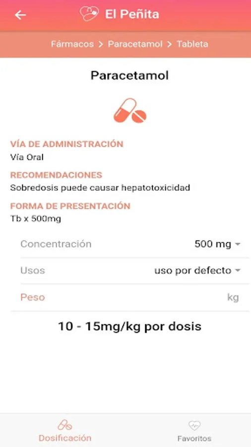 The mobile application "Dosis Pediatricas - El Peñita", based on the book "Dosage of Medications in Pediatrics 7th Edition" by Dr. Hugo Peña Camarena (who also collaborated for the realization of this app), allows the user: