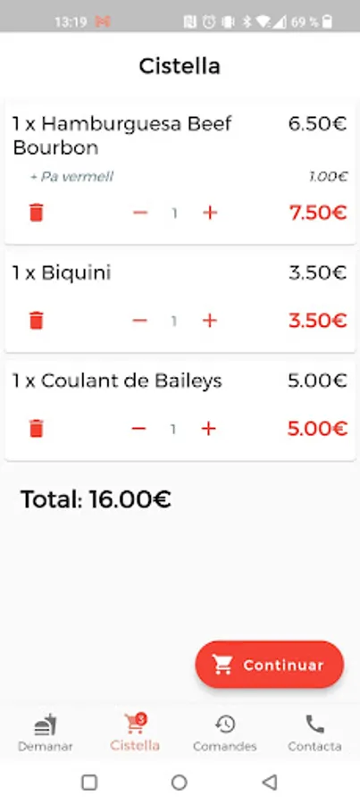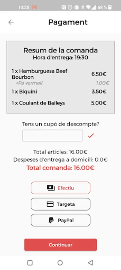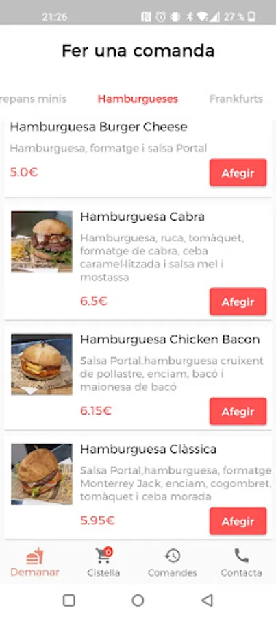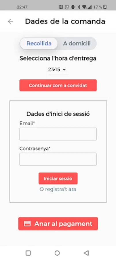 Application to place orders at home or to pick up at El Portal bar (Vidreres).